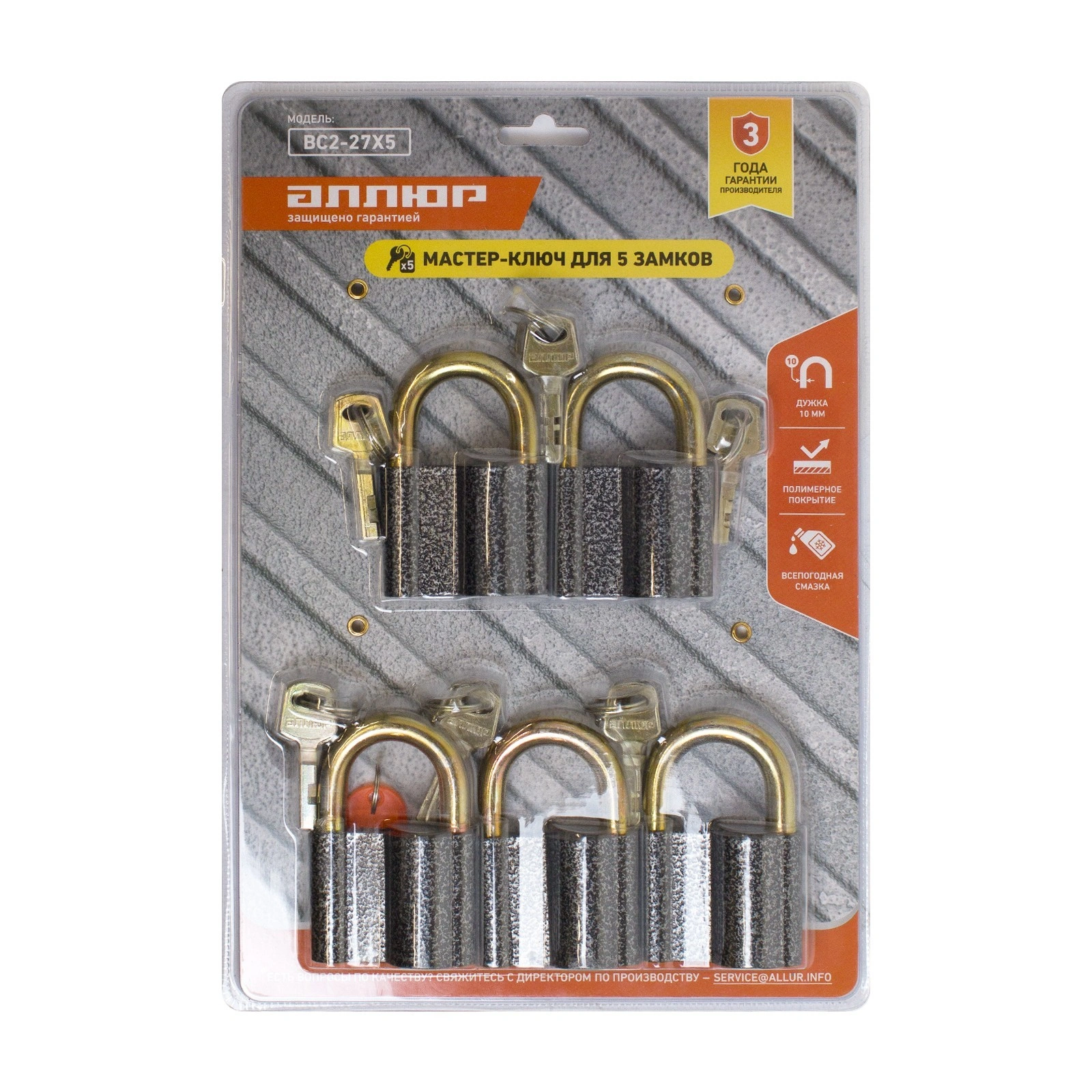 Комплектация: АЛЛЮР ВС2-27С с 3я индивидуальными ключами х5шт, комплект 3-мастер ключей х1шт