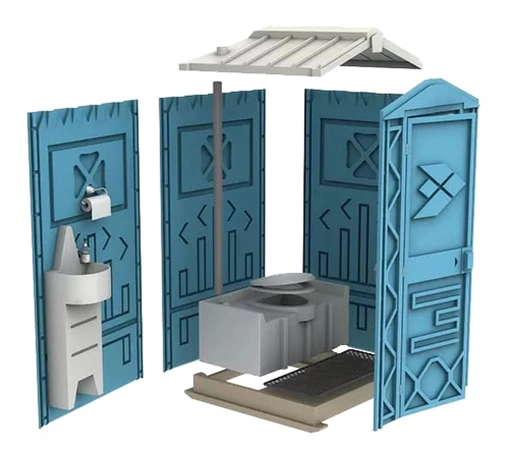 - Надежность. Полиэтилен выдерживает нагрузку до 300 кг/см3, литой накопительный бак и металлический каркас в конструкции двери и арки – за эксплуатацию туалетной кабины можно не волноваться!