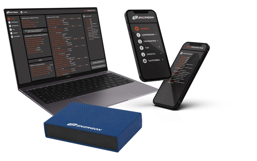 Набор датчиков и контроллеров для мониторинга параметров аккумуляторных батарей. Информация может быть выведена на ПК или мобильное устройство пользователя.