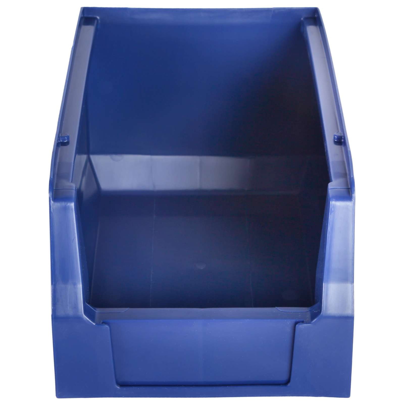 За счет убранных внутрь ребер жесткости контейнера достигается экономия пространства на 15%. Шероховатая поверхность дна предотвращает скольжение на стеллажах и лентах транспортеров, а специальный профиль придает прочность и жесткость боковым стенкам контейнера.