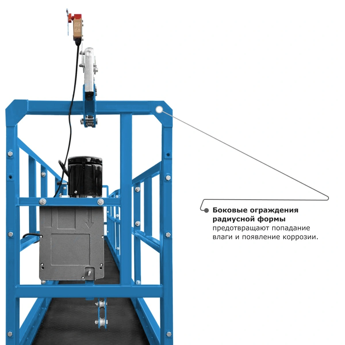 - Усиленные дополнительными ребрами жесткости консоли гарантируют надежную и безопасную работу люльки даже при интенсивном использовании.