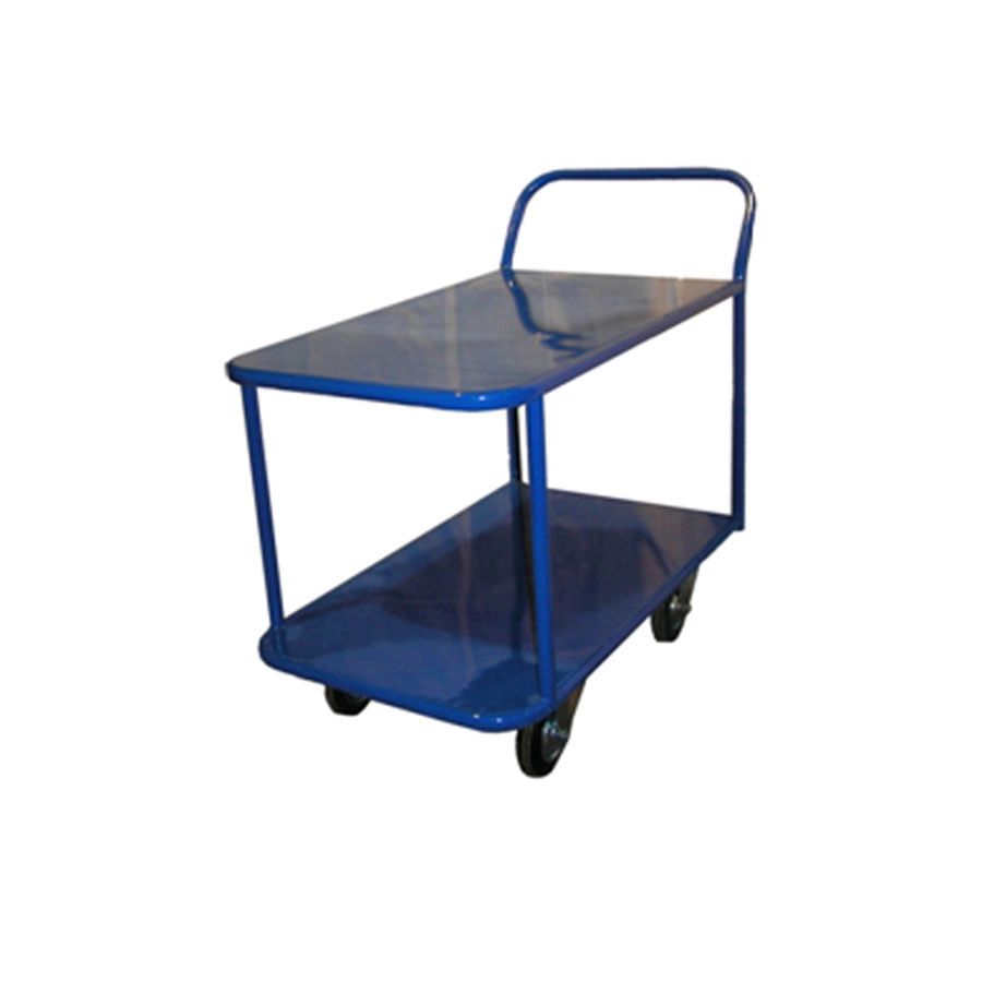 Платформенная двухъярусная 4-х колесная тележка КП-2 (2-х ярусная) используется для перевозки малогабаритных грузов. Платформы имеют металлический каркас накрытый металлическим листом толщиной 1,2мм. Размер платформы 700х1200мм. Расстояние между ярусами 480мм. Количество ярусов - два.Габаритная высота 1050мм.Покрытие металлических деталей тележки - полимерное. Цвет - синий.Тележка КП-2 (2-х ярусная) оснащена двумя поворотными и двумя неповоротными промышленными колесами из черной стандартной резины от всемирно известного, ведущего итальянского производителя Tellure Rota, диаметром 200мм. Две платформы позволяют удобно расположить перевозимые предметы.Тележка широко используется на складах, в торговых павильонах, а также в гостиничном и ресторанном бизнесе. Грузоподьемность до 690кг.