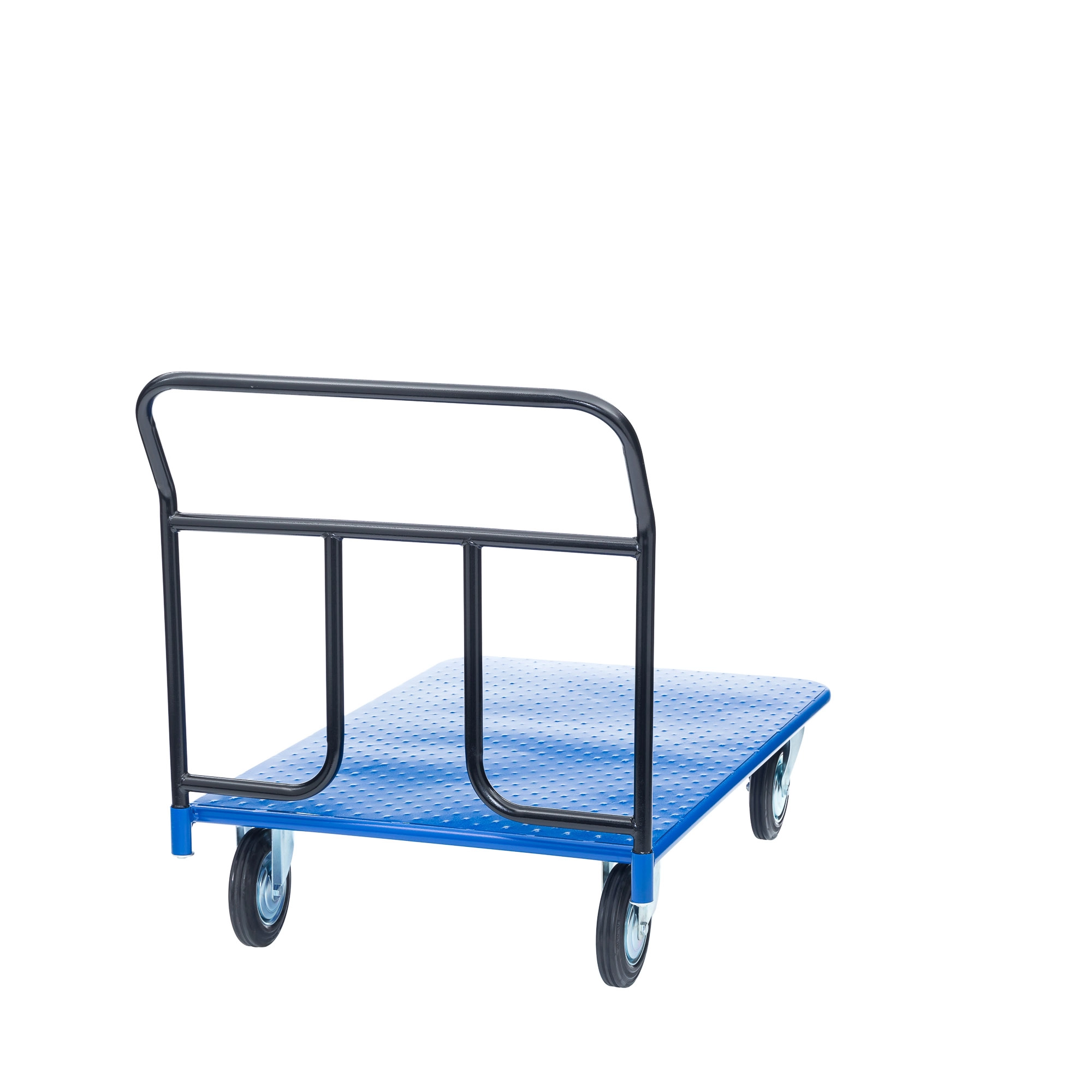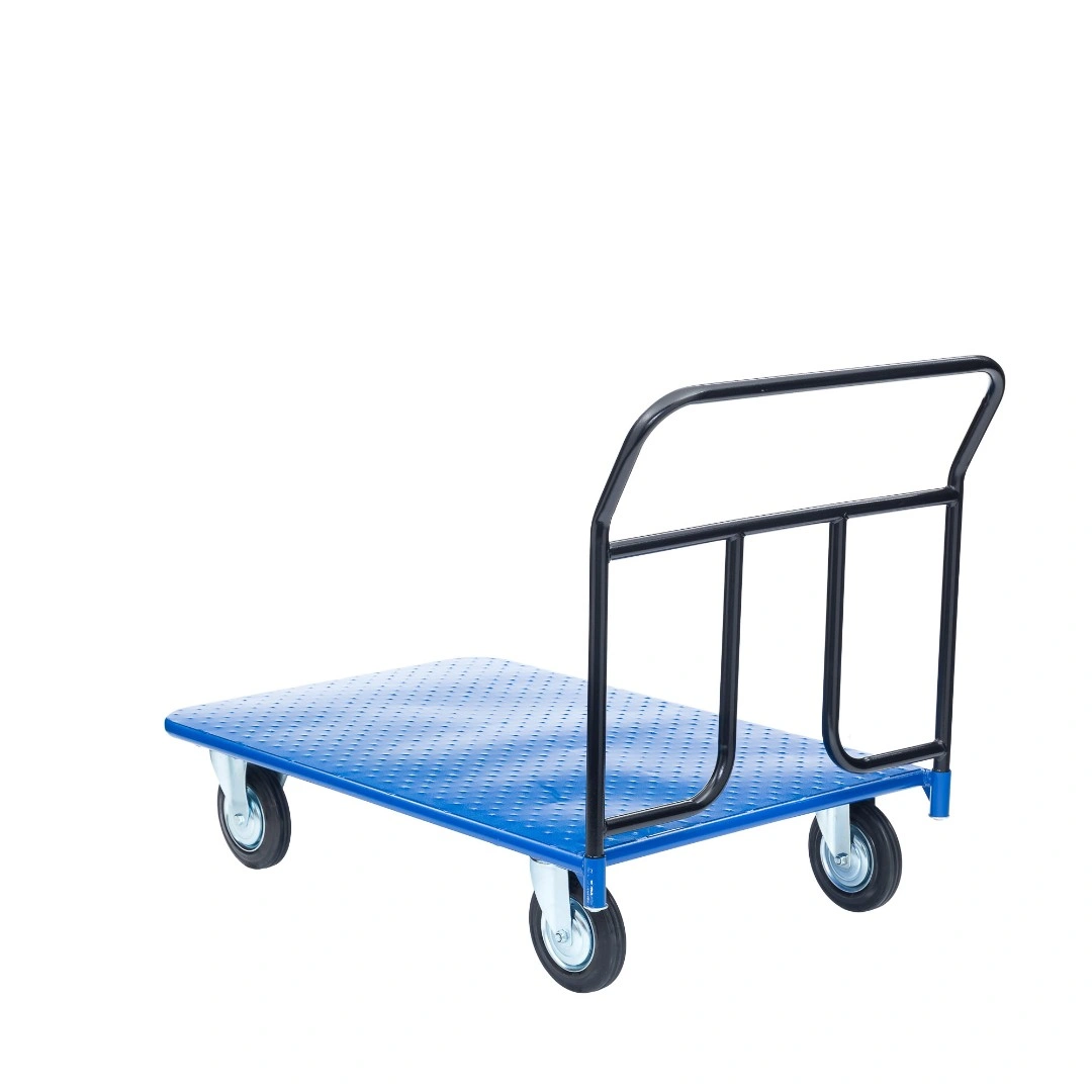 Платформенная 4-х колесная тележка КП-400-160-К используется для перемещения различных грузов в складских помещениях. Ручка крепится к платформе болтами, для компактного хранения можно снять, высота ручки 750мм. Платформа имеет уникальную рельефную, полимерную, противоскользящую поверхность, размером 700х1000 мм. Цвет - синий, шагрень. Для легкого перемещения тележка КП-400-160-К комплектуется двумя поворотными и двумя неповоротными колесами, изготовленными из высококачественной литой резины, диаметром 160мм., комплектом крепежа. Грузоподъемность до 400кг.