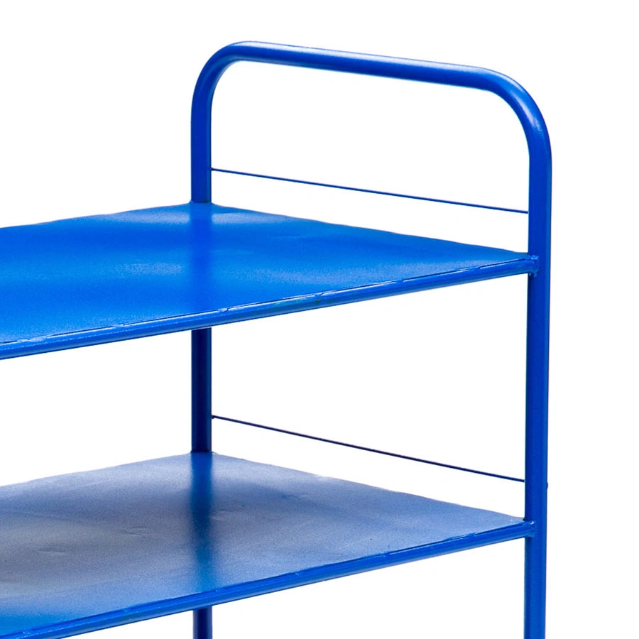 Платформенная трехъярусная 4-х колесная тележка КР-3-150-И предназначена для перевозки малогабаритных грузов. Платформа металлическая толщина листа 1,2мм. Размер платформы 600х900мм. Расстояние между ярусами 300мм. Количество ярусов 3 шт. Габаритная высота 1000мм. Покрытие полимерное. Цвет - синий, шагрень. Тележка КР-3-150-И комплектуется: двумя поворотными и двумя неповоротными промышленными колесами, диаметром 150мм., из черной стандартной резины, от всемирно известного, ведущего итальянского производителя Tellure Rota, метизами для крепления. Благодаря наличию трех ярусов, тележка широко используется на складах, в торговых павильонах, а также в гостиничном и ресторанном бизнесе. Грузоподъемность до 450кг.