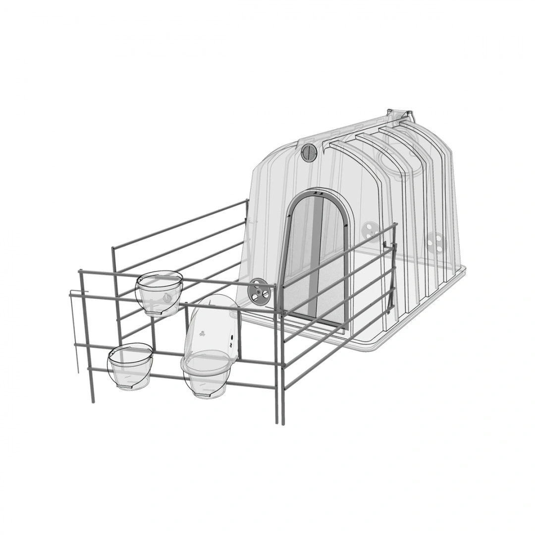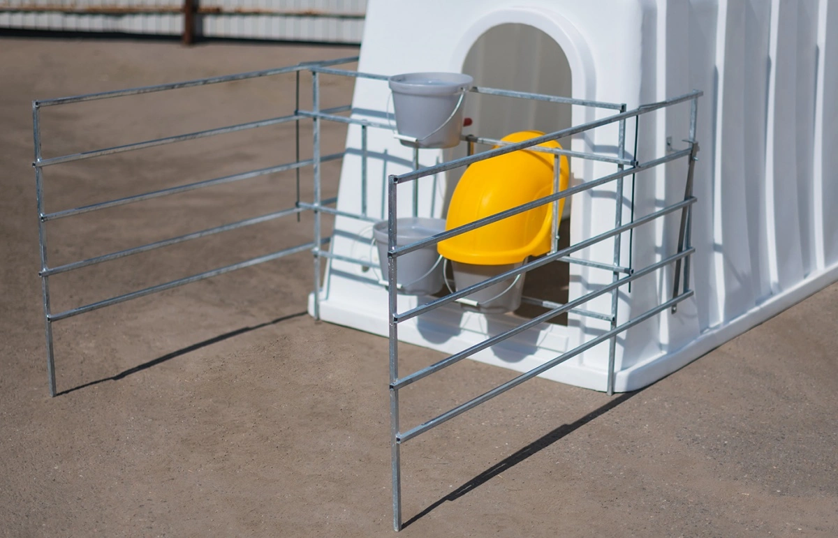 Представляет собой ограждение выгульной площадки индивидуального пластикового дома для содержания телят.
