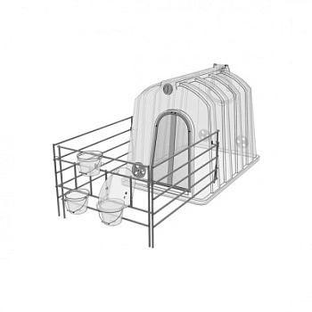 Реализована возможность закрытия теленка в доме перемещением передней стенки вольеров в первые дни жизни, а так же в холодных регионах. Передние стенки могут сдвигаться к домам отдельно от боковых.