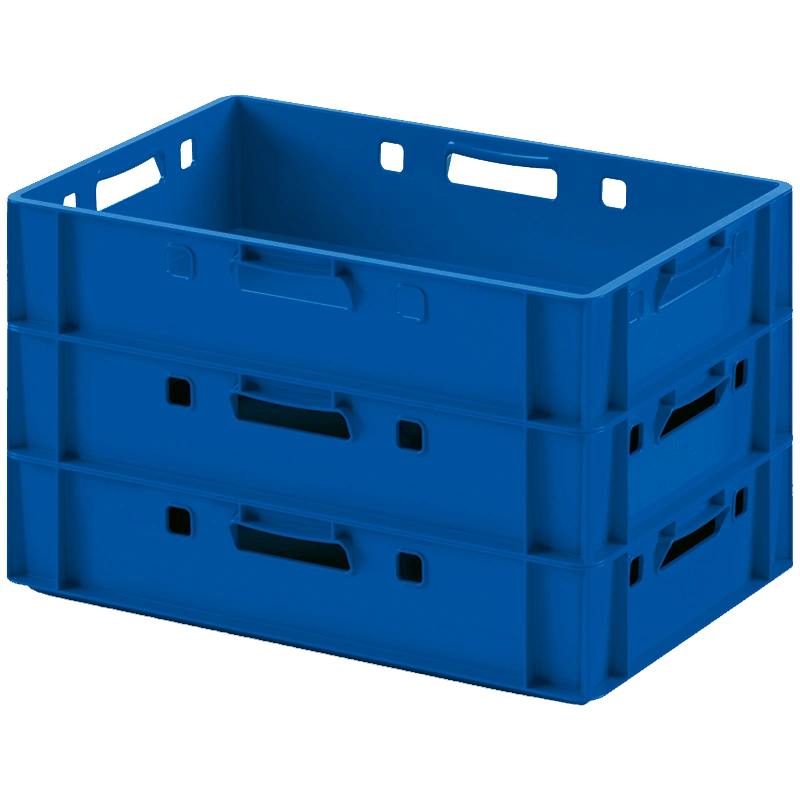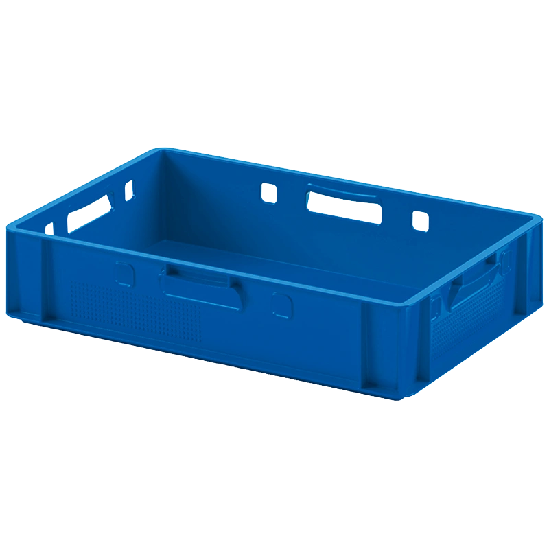 Ящик для мяса Е1 это первый по размеру в линейке мясных ящиков. Отлично штабелируется и собирается в единый сет со всеми ящиками серии. Отлично подходит для хранения в холодильных и морозильных камерах.